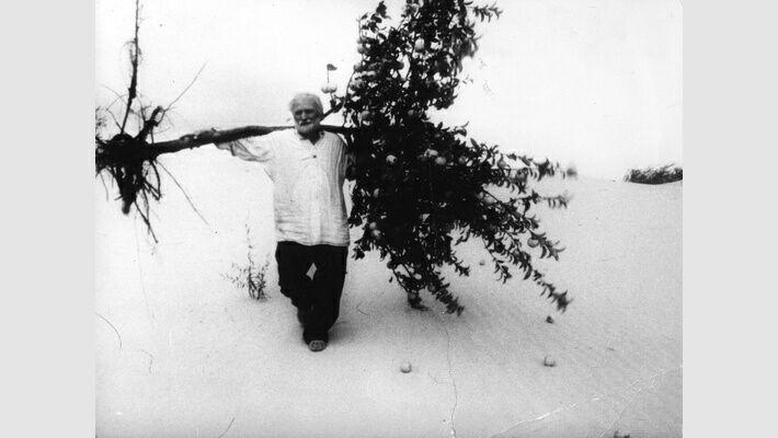 Режисер використовує прості та архетипові образи: криниця – джерело життя, краси, молодості; пісок – символ забуття, безпліддя, Іван Дзюба із захопленням писав про влучність цієї кінометафори: «Досить згадати, наприклад, вражаючу картину як сини подають батьку замість води відро піску, і миють ним його обличчя й спину, гадаючи, що то джерельна вода, або як вони ж величезним неводом до знемоги ловлять рибу в піщаній пустелі!»[2]; яблуня та яблука – символ молодості, життєвої сили, один із найважливіших моментів фільму, це сцена, в якій Левко із корінням вириває яблуню, бо більше нема тієї родини, для якої ця яблуня давала свої плоди.