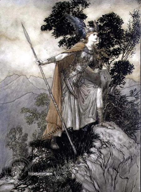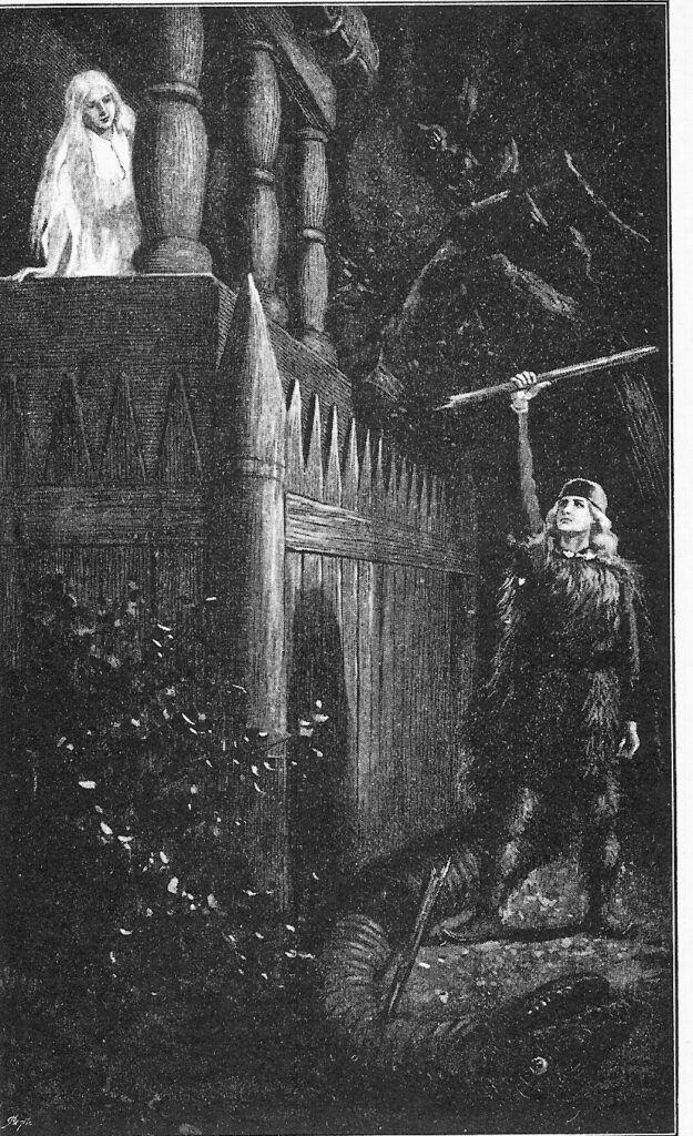 — Я поклала у битві Гьяльмґуннара, й тоді Одін вколов мене сонним шипом у помсту. Він сказав, що ніколи я не матиму перемоги тепер і мушу взяти шлюб. Та я собі постановила: ніхто мене не візьме за наречену, якщо хоч раз відчував страх20.21