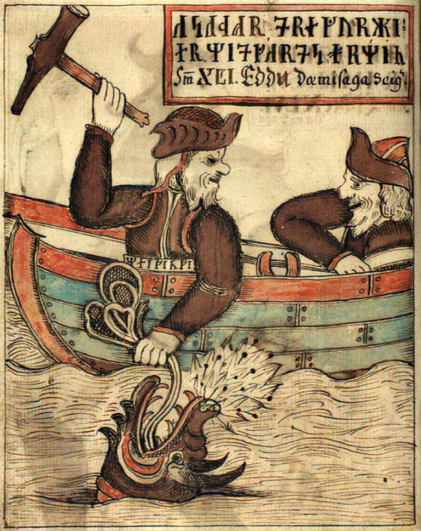 Тут ми згадуємо не лише про уробороса, а й про Всесвітнього Змія Йормунґанда. «Молодша Едда» у главі 34 пише: